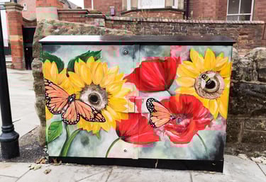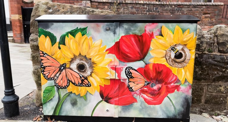We have two types of roadside cabinets in Chippenham: Openreach (BT) boxes and Telent (traffic signal) boxes. The winning designs will be used to paint or wrap these boxes in 2026, transforming everyday street furniture into miniature pieces of public art.