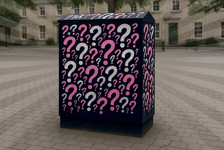 Turning Chippenham’s everyday street cabinets into vibrant mini artworks. Our Curious Cabinets project invites local residents to help brighten the town by reimagining the green and black utility boxes that line our streets. It’s a celebration of community creativity — transforming the ordinary into something extraordinary.